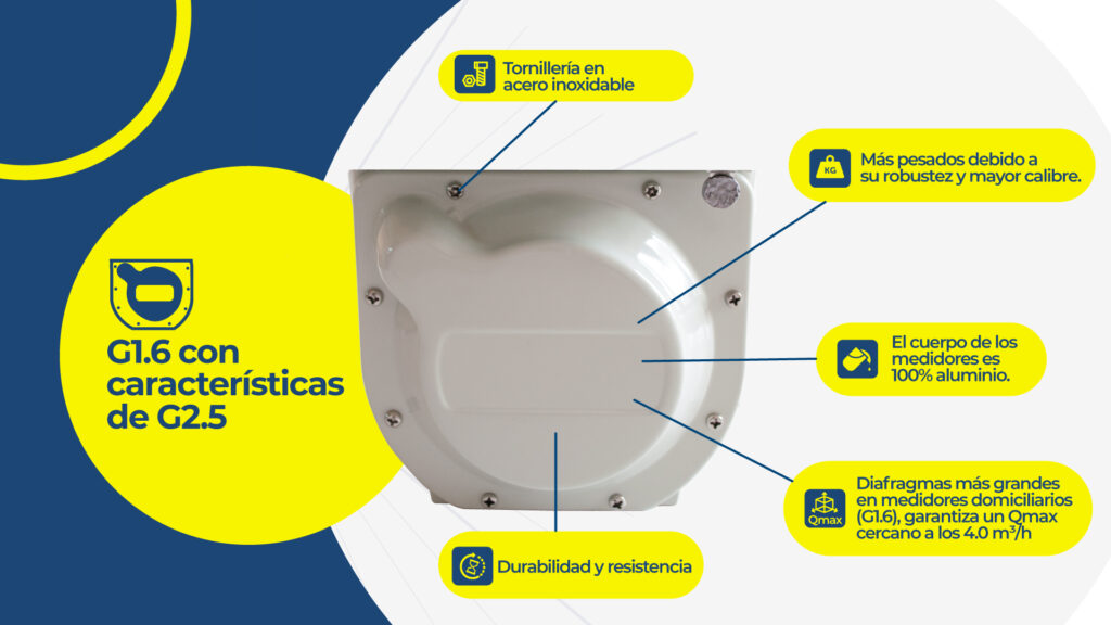 Los medidores de gas Tecun están perfectamente diseñados para el mercado latinoamericano. Teniendo en cuenta que gran porcentaje de los medidores instalados quedan a la intemperie (viento, arena, lluvia, perritos, etc.), las tapas en acero o aluminio y la tornillería en acero inoxidable garantizan una mayor vida útil, por ende los costos por reposición se reducen significativamente. Por otra parte, la inyección de aluminio del cuerpo del medidor, al ser de mayor calibre, hace que sea más resistente a golpes.
